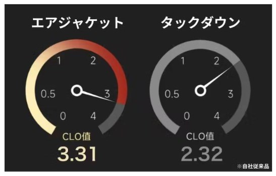 CLo値とは、衣服の断熱性能を数値化したもので、エアロゲルジャケットはCLo値3.31という非常に優れた数値を記録。