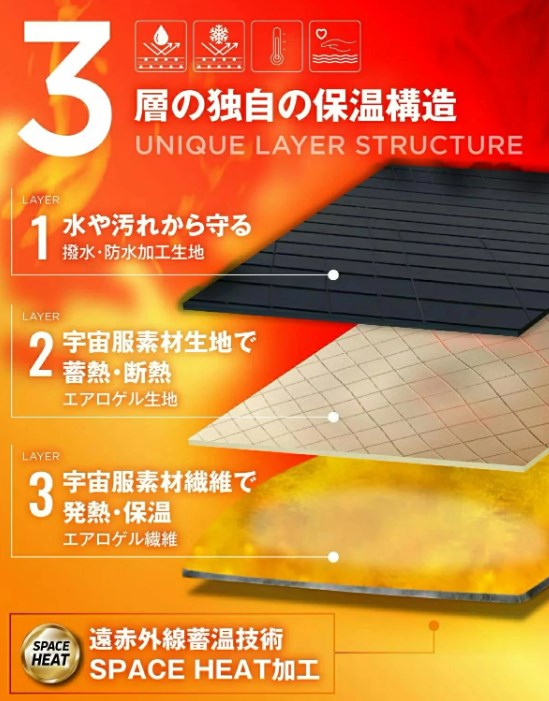 これは、極寒の宇宙空間で宇宙飛行士を守るために開発された、先進のテクノロジーによる素材です。