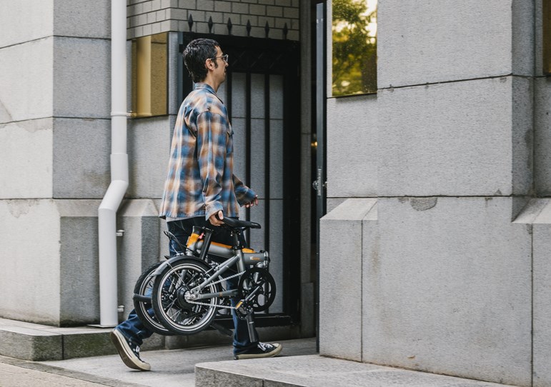 電車での輪行や車載、自宅やオフィスでの保管まで、あらゆるシーンに溶け込むスマートな携帯性を実現しています。