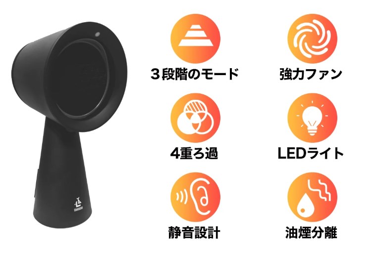 そんな不満を解消するべく登場したのが、このLivease。卓上に置くだけで使える手軽さと、専用設計による高い油煙吸引力、さらに4層フィルター構造による空気の浄化力が特徴です。