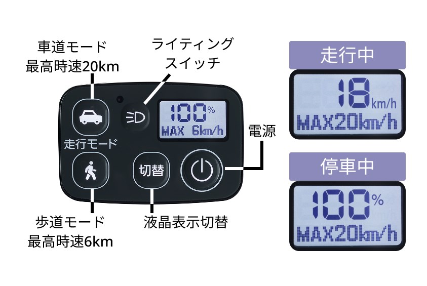 | 最高速度 | 車道:20km/h / 歩道:6km/h |