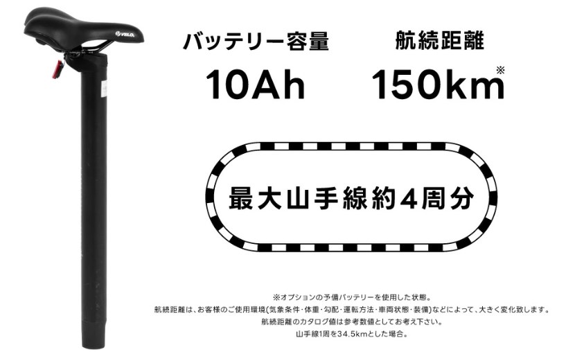最大航続距離 | 最大150km | 一般的なe-bikeの2倍以上の長距離性能 |